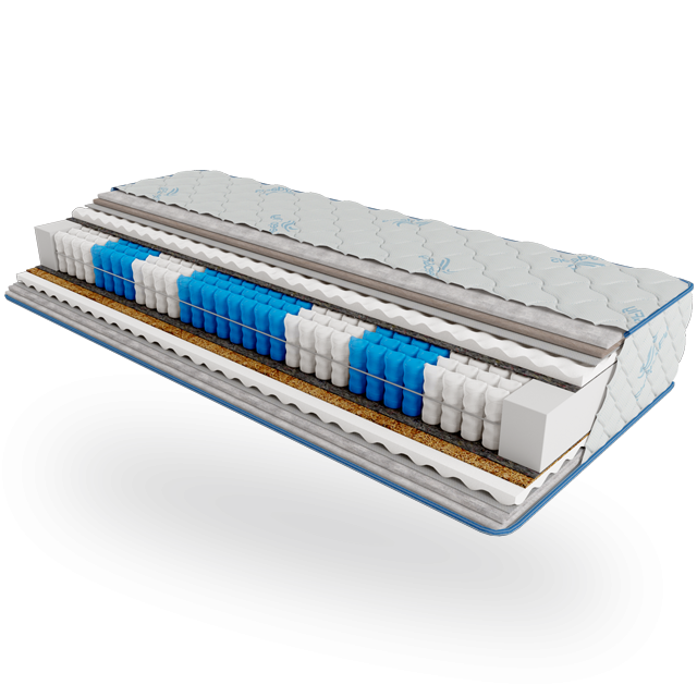 • Наповнювач: Синтепон Натуральна вовна Спанбонд Піна з масажним ефектом Термоповсть Пружинний блок 7-zone ultra Термоповсть Латексована кокосова койра Піна з масажним ефектом Посилений євроборт із піни по периметру
